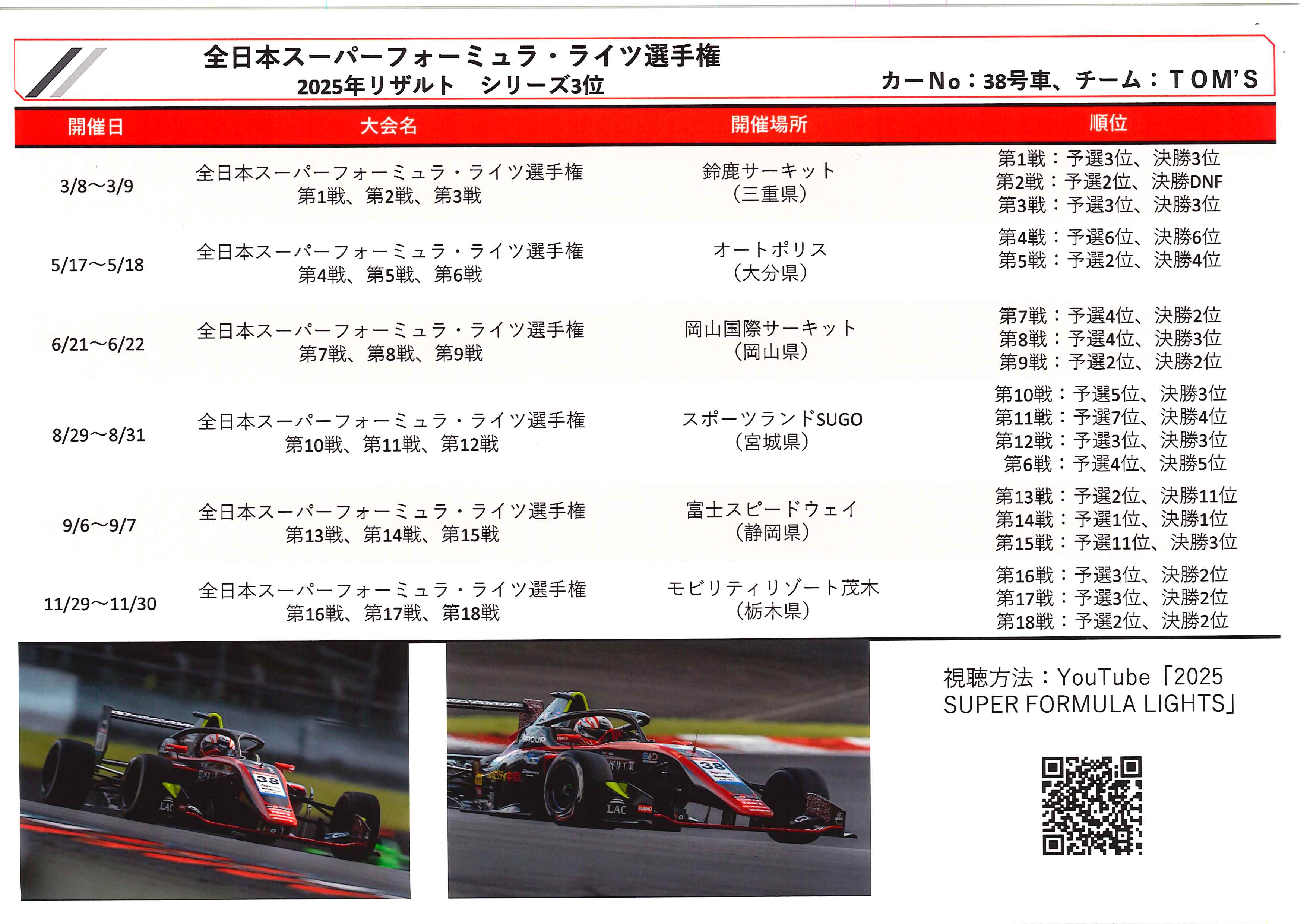 昨年はスーパーフォーミュラライツ・GT300共にレース優勝という実績がございます。本当に感動を頂いたレースがたくさんありました。