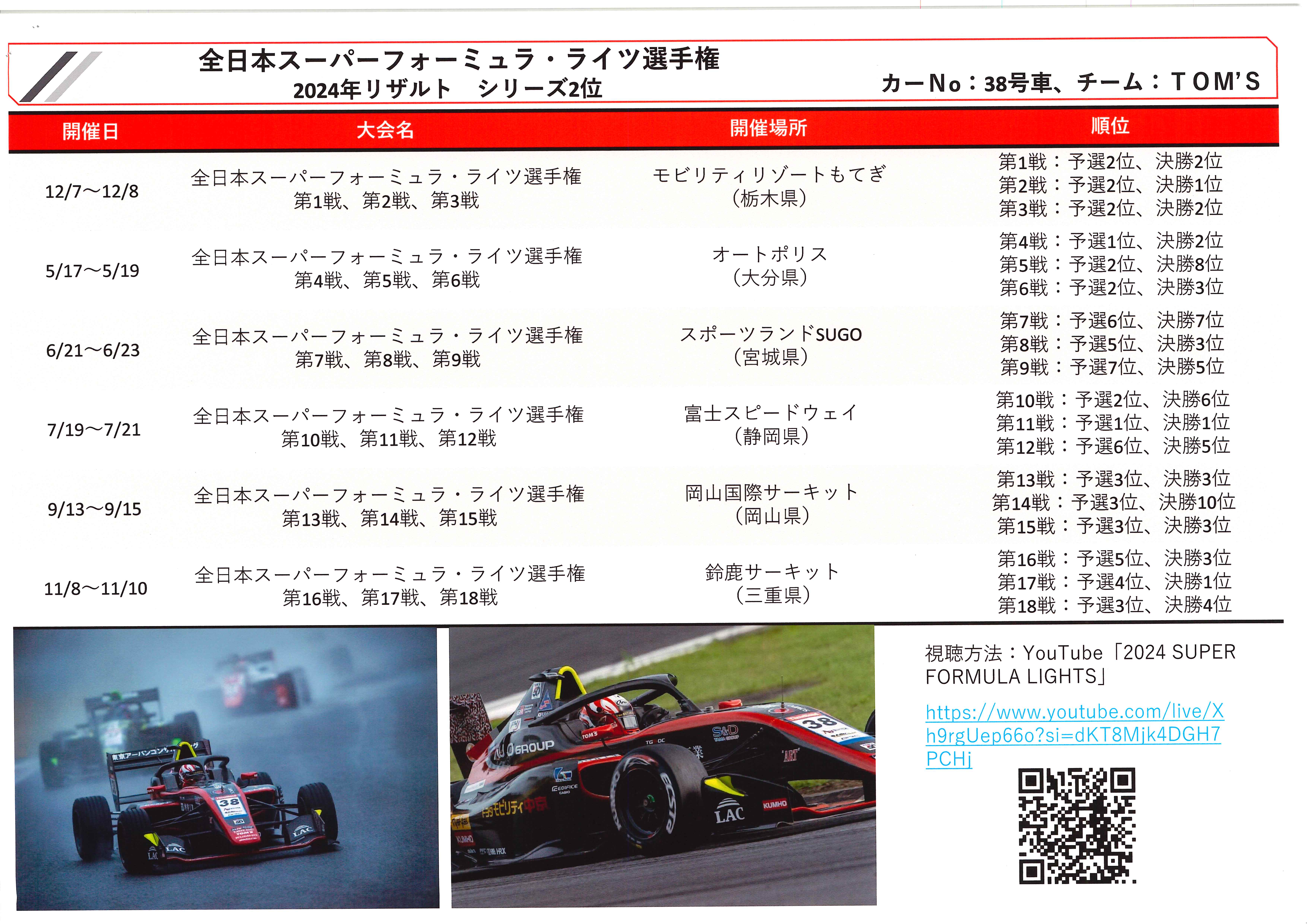 特にスーパーフォーミュラ・ライツ選手権では前年度2位という大変素晴らしい成績を収めております。