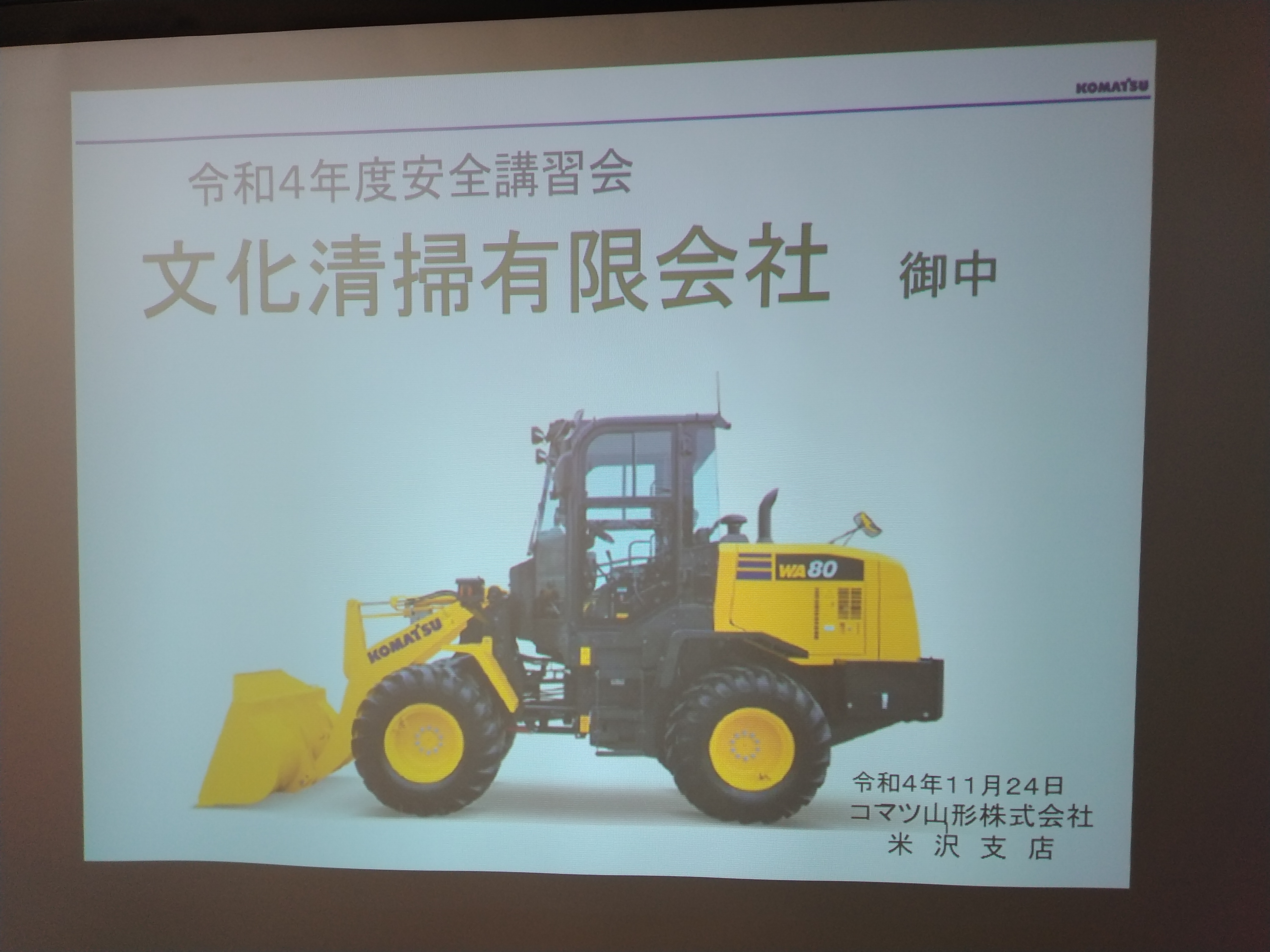 メーカーコマツの新型WA40型の納車式を行いました。